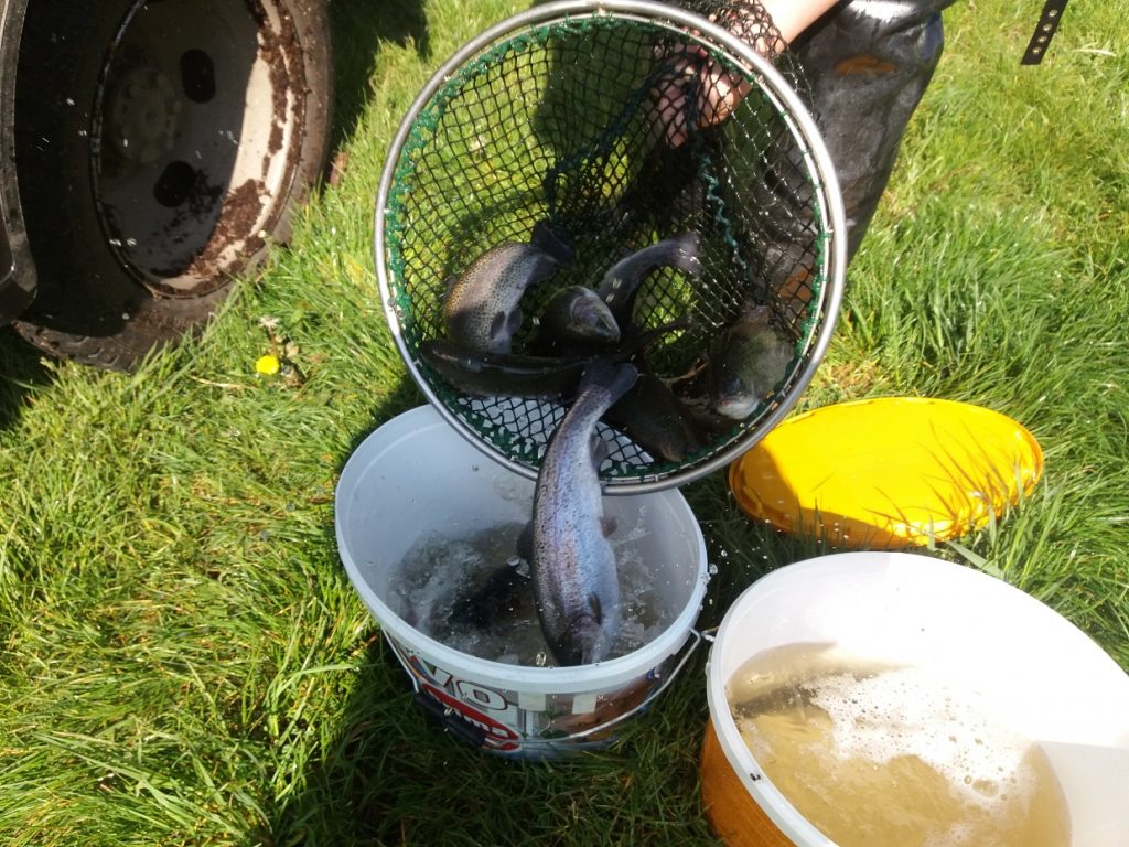 Nasazování Úhořího Monte, Pstruha potočního, Pstruha duhového, Lipana Podhorního.