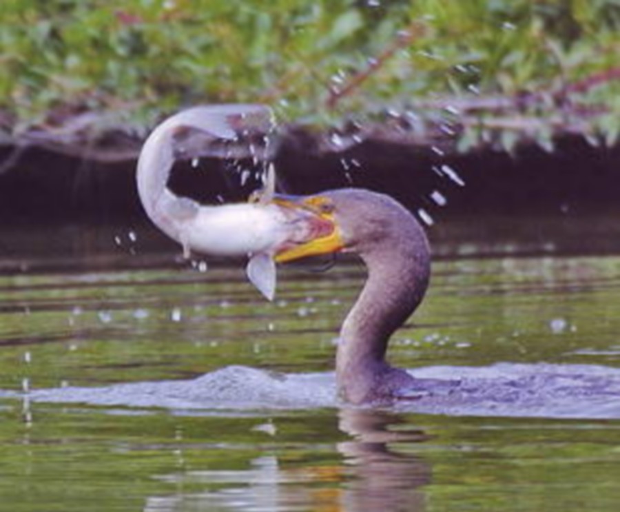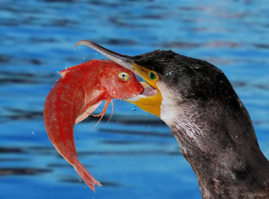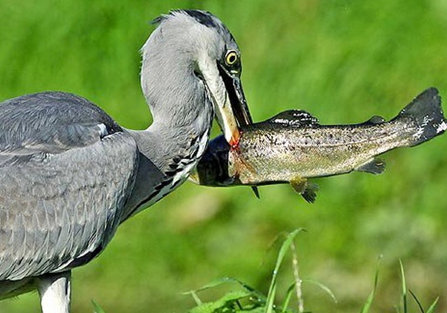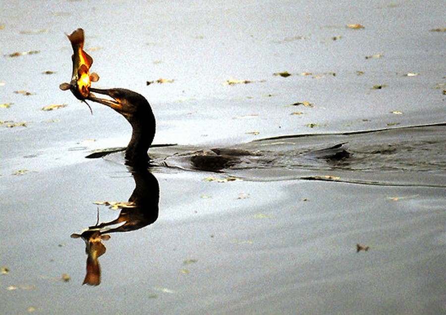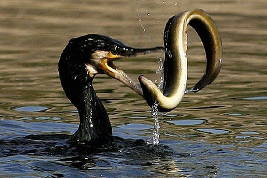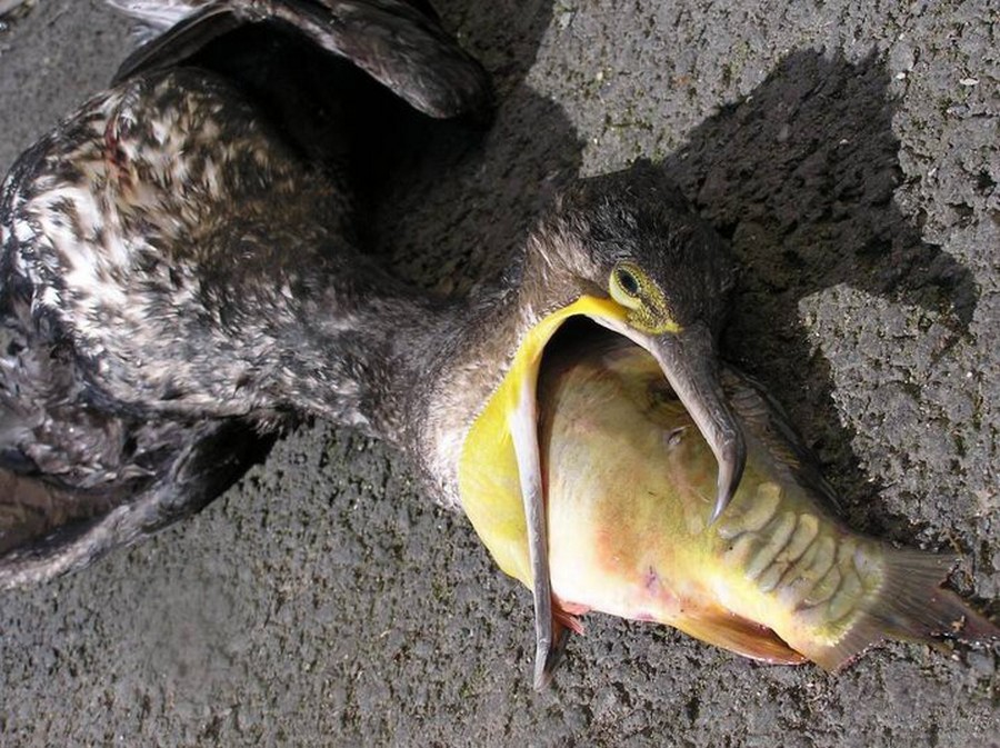 Rybu kterou do sebe nedokáže narvat většinou smrtelně poraní, protože jeho zobák je zahnutý a ostrý jak žiletka, takže škody se ještě násobí.