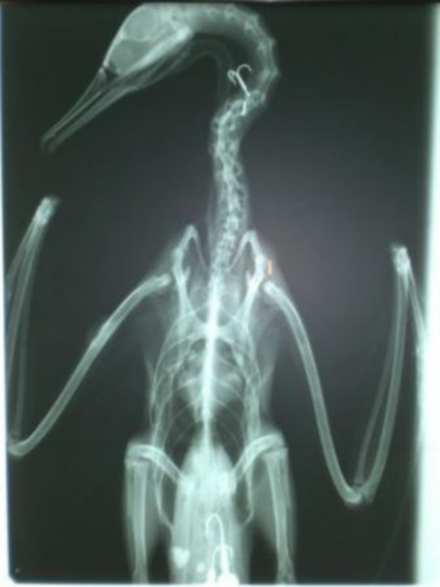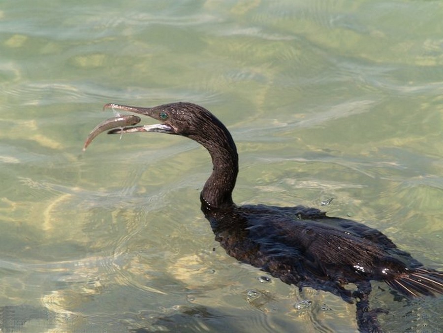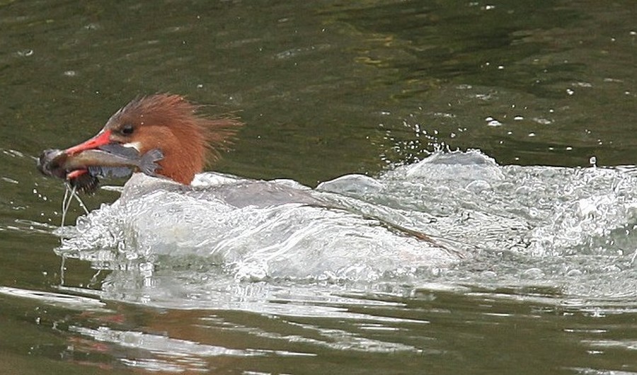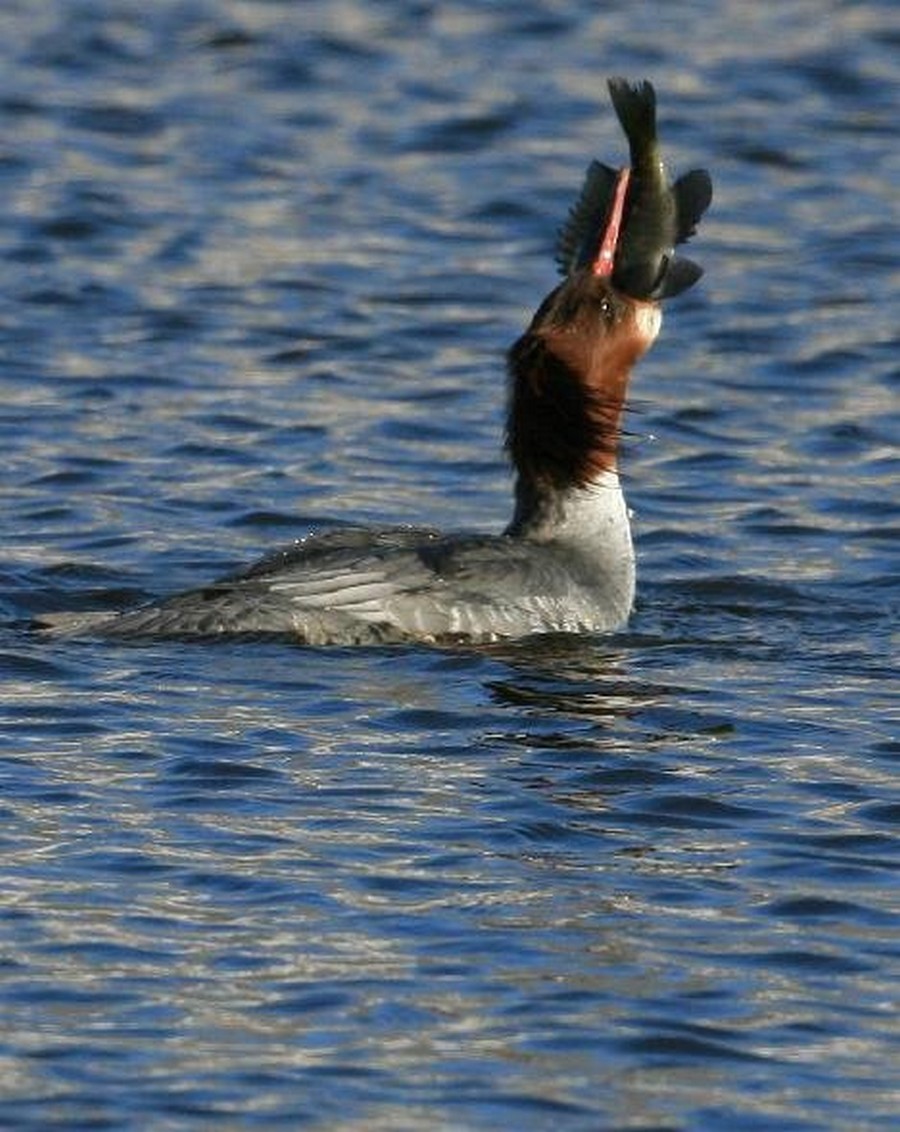 Rybu kterou do sebe nedokáže narvat většinou smrtelně poraní, protože jeho zobák je zahnutý a ostrý jak žiletka, takže škody se ještě násobí.